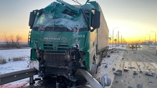 Под Волгоградом КАМАЗ с прицепом снес препятствие, водитель в больнице