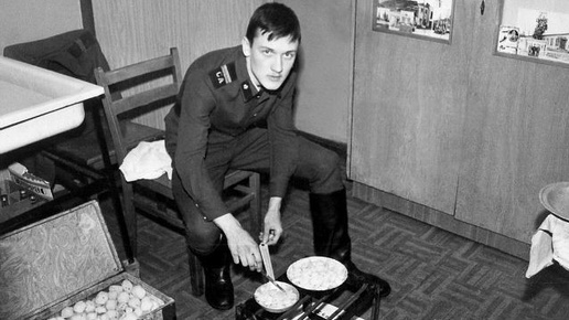 1. Андрей Капитон вспомнил: "За всю армию ни разу жареной картошки не поел… В учебке повара были срочники, но сами понимаете, нам салагам не положено. Да и там за счастье было доесть из котлов, то что осталось от приема пищи части. В боевой были гражданские поварихи, заступали на сутки, к плитам не подпускали. В казарме жарить, как то не принято было, на первом этаже штаб, а казарма всего 2 этажа, по запаху быстро вычислят... На боевое дежурство привозили еду из солдатской столовой. Готовить негде было...