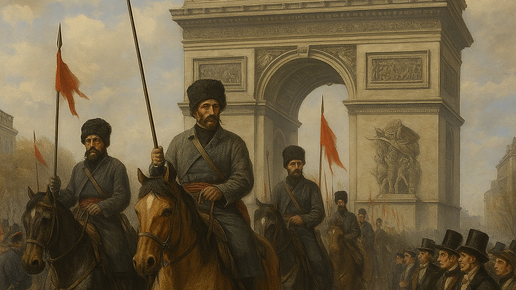 Как русская кавалерия оказалась в сердце Франции — и почему об этом не забыли до сих пор Это звучит как сюжет альтернативной истории или голливудского фильма: русские казаки на лошадях въезжают в Париж. Но это не вымысел. Это — реальность, и один из самых удивительных эпизодов европейской истории XIX века. Да-да, в 1814 году, после десятилетий побед Наполеона, Париж пал... и казаки действительно в него вошли первыми. После кровопролитных наполеоновских войн и особенно неудачного похода на Россию в 1812 году, Великая армия Наполеона была почти полностью уничтожена...