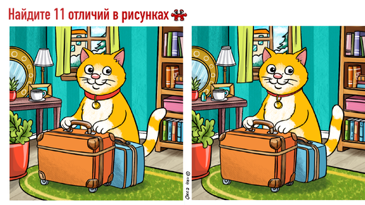 Выпуск №539. Кот Кеша отправляется в отпуск! Найдите 11 отличий в комнате, пока он не ушел