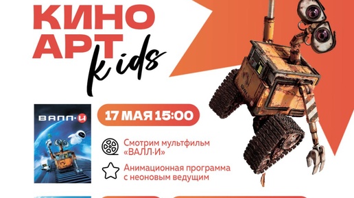 Проект КиноАрт kids в кинотеатре «Чарли» ТРЦ «Вавилон»! 17 мая в 15:00 внеземной мультфильм «Валл-и» и игры в фойе с "неоновым" ведущим! А 1 июня большой праздник с просмотром мультфильмов ко Дню защиты...