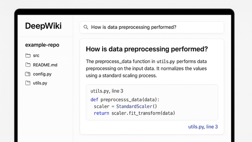 Мы живём в эпоху, когда LLM-модели генерируют больше кода, чем человек способен прочитать. Проблема больше не в том, как писать, а в том, как понимать. Именно эту боль закрывает DeepWiki — новый сервис от Cognition (создателей Devin), который превращает любой GitHub-репозиторий в интерактивную вики с поиском по вопросам и прямыми ссылками на строки кода. DeepWiki решает ключевую проблему open-source: скорость понимания. Любой разработчик знает, сколько времени уходит на чтение чужого репо, особенно монолита без документации...