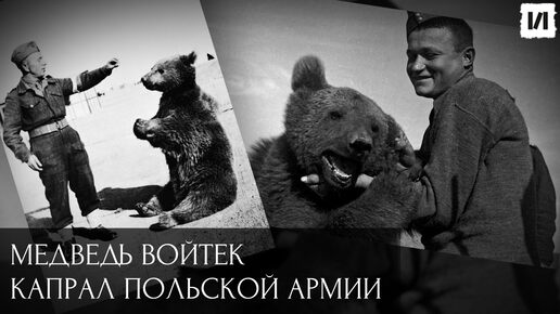 медвежонка. Бойцы выкормили его сгущенкой из бутылки (из-под водки) и зверь стал душой полка. Ему дали имя Войтек. И он вырос с полным убеждением, что он человек. Он научился отдавать честь, обожал ездить на пассажирском сиденье грузовика, в шутку боролся с солдатами и перенял их вредные привычки. Медведь с удовольствием пил пиво и «курил» сигареты. Сначала делал пару затяжек, а потом съедал их. Когда корпус перебрасывали в Италию, британское командование запретило брать на борт корабля животных...
