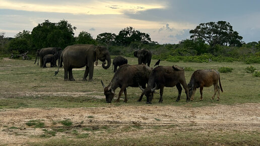Сразу уточню, что это было мое первое сафари, поэтому сравнить особо не с чем. Но вообще - это полный восторг! И в зоопарки уже ходить точно не хочется, особенно в России. Мы решили остановиться на ночь в районе национальных парков и взять на целый день сафари. Остановились мы в городке Weerawilla, в отеле на берегу озера. Сафари начинается уже оттуда - к озеру приходят буйволы и множество птиц. Отель нам понравился, если надо подробнее расписать где остановиться и поесть недорого и качественно - пишите в комментариях, все подробно расскажу...