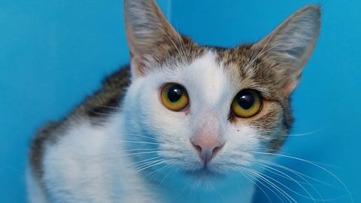 Малютка Мими, молоденькая (меньше года), ласковая, с очень забавной мордашкой. Кошечка невероятно обаятельная! Но так никому и не приглянулась.. Мими "не повезло" быть белой в пятнышко, таких люди забирают очень редко и с неохотой. Почему? - вопрос без ответа, видимо, такой окрас плохо вписывается в интерьер или слишком пестрит в глазах.. Но факт остаётся фактом: беленькие кошечки в шапочках дольше всех остальных ищут дом, какими бы ласковыми, красивыми они ни были Помимо очень выразительной внешности...