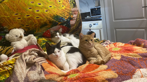 3 кота, 3 хвоста и маааленькая кошечка 🐈‍⬛