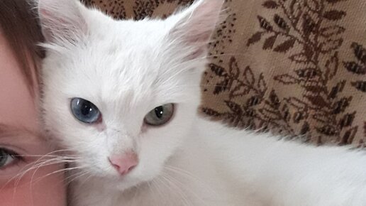 Как это белоснежное чудо оказалось на улице загадка. Эта кошка точно была домашней кошкой. Она не боится людей, наоборот, Саймон ищет общения сама. Обожает сесть на колени и мурчать. Даже еда ее интересует меньше ласки. Саймон была найдена в крайней степени истощения...