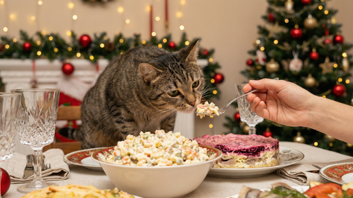 Новогодний салат для кота: почему это опасная игра с его здоровьем