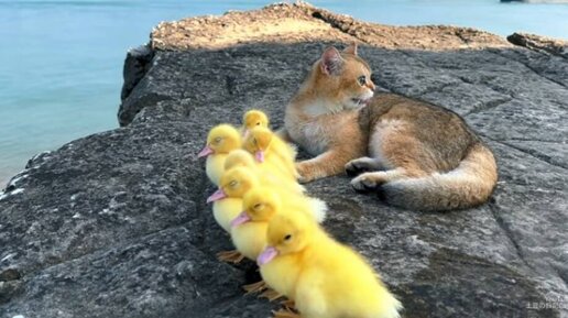 Видео: кошка заботится об утятах и выводит их на прогулку