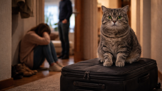 Человек видит в нём отпуск, командировку, “выдохнуть наконец”. А животное видит в нём другое: исчезновение. У кошек вообще своя бухгалтерия жизни. Мы думаем — “ну подумаешь, сумка у двери”. А кошка уже ведёт внутренний протокол: вчера он достал чемодан — и сегодня ушёл; тогда чемодан пах слезами; в прошлый раз после чемодана долго было тихо; чемодан — это когда люди разговаривают шёпотом и делают вид, что всё нормально. И вот однажды я встретил кота, который устроил чемодану пикет...