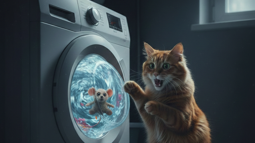 02:00. Ночной дозор. Вспомнил про свои планы исследовать стиральную машину. Подошел к ней в темноте. Она холодная, молчаливая и пахнет порошком «Весенний луг». Пытался открыть дверцу лапой, но эта круглая штука держит оборону...
