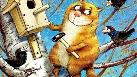 Для скворцов купил скворечник- наш добрейший Кузя кот. И в один прекрасный вечер - сам прибил , смотрите - вот! ☆☆☆ По утрам наш милый котик - рад послушать птичий гам. В рот положив бутербродик - с сыром, маслом - просто ам! ☆☆☆ Птичек радует соседство - стережёт коток птенцов...