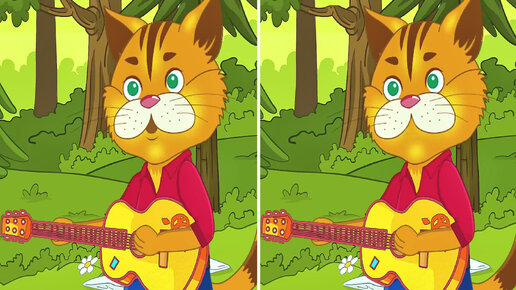Сравните 👀картинки с котом который играет на гитаре и найдите 3 отличия. Зарядка для внимательности.
