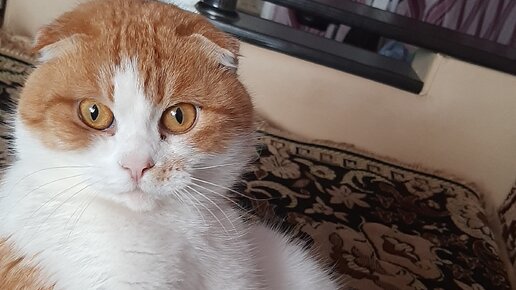 Я забрался на верх кресла,потому что хозяйка включила страшную машину-пылесос!
