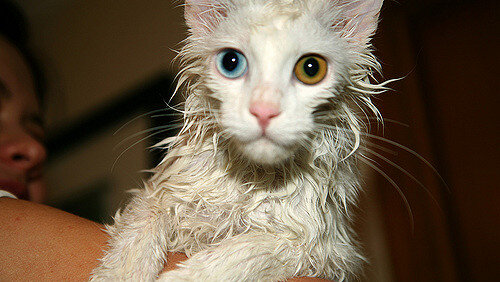 Кот Пушок искупался