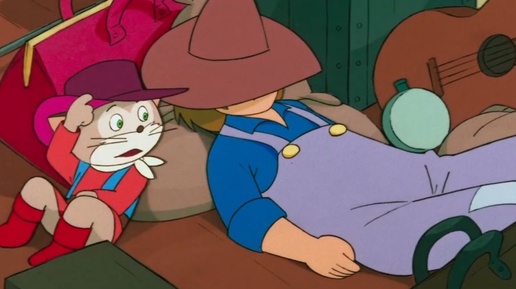 Студия - Toei Animation. Мультфильм начинается практически так же, как и кот в сапогах. Перро повинен в том что не ест мышей и за это его должны наказать. И снова нас ждет преследование Перро 3-мя котиками возмездия. В этот раз Перро на диком западе. Путешествует в компании какого-то Джимми. Они едут на дилижансе вместе с пассажирами. По пути их останавливают бандиты, ищут шерифа. Не находят и отпускают наших героев. Одна из действующих лиц это Энни. Она приехала с учебы на Востоке. Приехав в город, оказывается что ее отец...