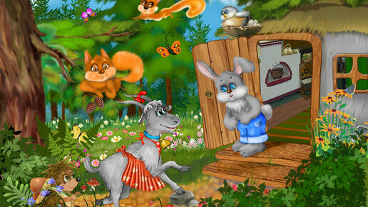 Жили были дед да баба да внученька Маша. Не было у них ни коровки, ни свинки, никакой скотинки - одна коза. Коза, черные глаза, кривая нога, острые рога. Дед эту козу очень любил. Вот раз дед послал бабку козу пасти. Она пасла, пасла и домой погнала. А дед сел у ворот да и спрашивает: - Коза моя, коза, чёрные глаза, кривая нога, острые рога, что ты ела, что пила? - Я не ела, не пила, меня бабка не пасла. Как бежала через мосточек ухватила кленовый листочек, - вот и вся моя еда. Рассердился дед на бабку, раскричался и послал внучку козу пасти...