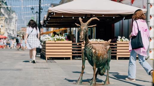 «Весёлая коза» — необычная достопримечательность Нижнего Новгорода. Эта бронзовая скульптура расположилась в самом центре города — на пешеходной Большой Покровской. Она непременно привлекает внимание прохожих своей игривостью и живым характером. Многие верят, что если потереть её рога, то все желания исполнятся. В этом материале вспомним историю памятника и городские легенды, связанные с образом козы. Памятник весёлой козочке появился на Большой Покровской — прямо напротив Театральной площади — в 2005 году...