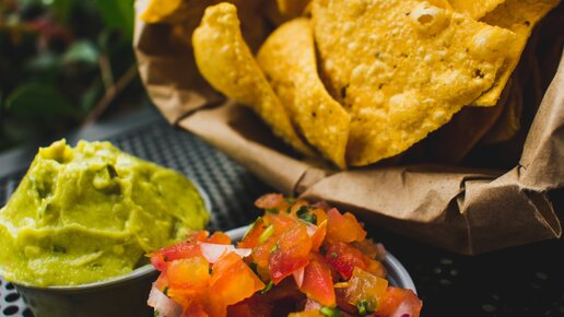 Еда. Вкусная мексиканская кухня. Гуакамоле и кукурузные чипсы из мультика Гадкий Я