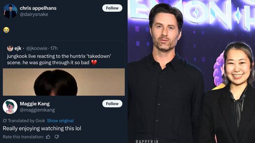 🔮 Режиссёры "Kpop Demon Hunters", Мэгги Кан и Крис Аппельханс, отреагировали на то, что Чонгук смотрел мультфильм в прямом эфире на