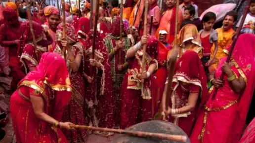 Так уж в Индии заведено. Все знают про фестиваль красок Холи, но не все знают про Латхмар Холи, который отмечают в Уттар-Прадеше. И его празднуют с особым, странным шиком. Есть легенда, по которой жило-было две деревни. В одной все поклонялись Кришне, а в другой женской богине - Радхе. На холи Кришна хотел выкрасить богиню Радху. Но не смогли до нее добраться, ведь у женщин и Радхи были латхи. А что такое латхи? Это попросту палка в индийской культуре, с ней в руках даже вышагивают женщины в розовых сари, которые создают собственные уличные группы самообороны...