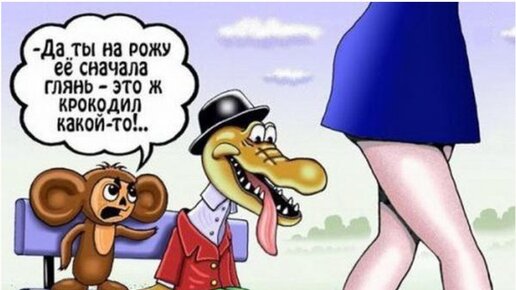Идут крокодил Гена и Чебурашка. Видят: сидит Шапокляк на лавочке и читает газету. Гена говорит Чебурашке: — Давай прикольнёмся — ты подойдёшь к ней и спросишь: Шапокляк, а где твоя шапка? А я подойду сзади, дам ей канализационным люком по голове и скажу: А вот её шапка. Так и сделали. Подходит Чебурашка к Шапокляк и спрашивает: — Где твоя шапка? А Гена сзади подходит, люком по голове: Бац!: — А вот её шапка! На следующий день идут они и видят, что Шапокляк сидит на том же месте и читает газету. Гена говорит: — Давай повторим...