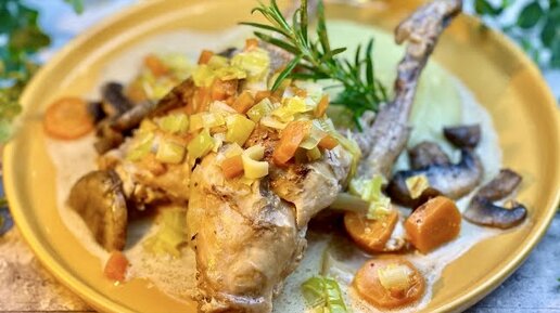 Кролик по-Французски или Фрикасе - блюдо, пришедшее к нам из Франции. Приготовить фрикасе из кролика очень легко! Кролик, тушённый в горчично-сливочном соусе, получается безумно вкусным, необычайно нежным и сочным. Гарнир к такому кролику может быть любым, но вкуснее всего с картофельным пюре. Это изысканное французское блюдо можно готовить как в будни, так и на праздничный стол. Пошаговый видео рецепт можно посмотреть в моем видео ниже: 🙌Способ приготовления: Морковь и лук-порей нарезаем кубиками и обжариваем на оливковом масле...