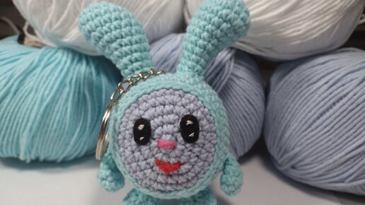 Предлагаю Вам связать Крошика из мультфильма "Малышарики". Игрушка, при вязании из пряжи YarnArt JEANS, получается ростиком 6,5 см (с ушками = 10см). Для вязания нам потребуется: 1. Пряжа голубого(личико) и бирюзового цвета. 2. Немного розовой(носик) и красной(рот) пряжи. 3. Чёрный фетр и белые нитки мулине. 4. Крючок и игла для сшивания деталей. 5. Наполнитель. 6. Кольцо для ключей, если хотите сделать брелок. Обозначения: 6сбн в А - провязать 6 столбиков без накида в кольцо амигуруми; сбн - столбик без накида; сс - соединительный столбик; (...
