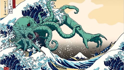 С тех пор как нейросети начали теснить художников, никого уже не удивить подобными сочетаниями. «Звёздные войны» в Средневековье, «Звёздные войны» в стиле Миядзаки, «Звёздные войны» в коммунистическом будущем… Ну а про Ктулху и говорить нечего – ещё до появления нейросетей он успел побывать и футболистом, и рекламой спичек, и даже польским политиком. «Звёздные войны» в стиле японских гравюр не такая уж и диковинка. А скрестить укиё-э с Ктулху сам Будда велел – древние японцы очень любили рисовать гигантских осьминогов в разных позах...