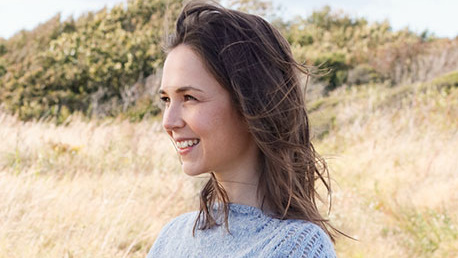 Джемпер Sapphire Trails от DROPS с ажурным узором на широких рукавах длиной 3/4