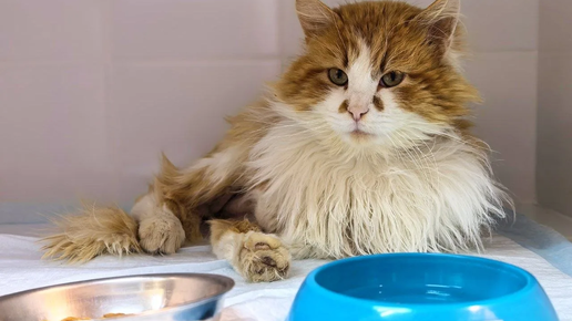 Я смотрела на него полчаса. Бело-рыжий, с двумя рыжими пятнышками на щеках похожими на румянец. Лицо у него детское, вечно изумлённое. Только в мультиках все ненастоящее, а Камыш настоящий и живой. И его сбила машина. Сначала думали, что слегка зацепило. Потом обследование показало, что вовсе не слегка. Пришивали, зашивали, ждали, пока почка очнется. Не очнулась. Работает одна. Но вроде бы она чудом и одна справляется. А вот главная проблема в том, что кот спинальник. Сидит, скрючившись, на своей же лапе и молча ест корм...