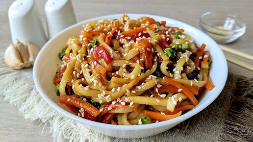 Лапша удон с овощной начинкой: вкусный ужин всего за 30 минут