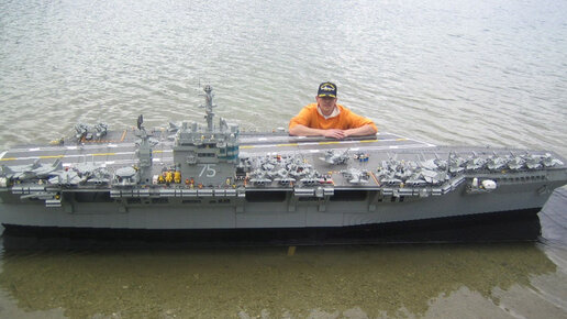 Огромная модель плавучего авианосца, полностью из деталей Лего