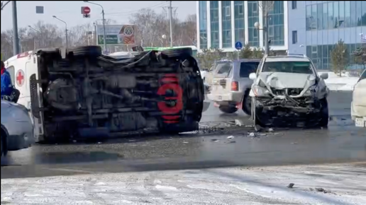 Скорая перевернулась после ДТП с Lexus в Южно-Сахалинске