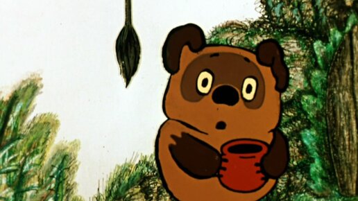 Евгений Павлович Леонов - заслуженный советский и российский актёр театра и кино. За время своей карьеры он озвучил немало мультфильмов, и также всеми известного Винни-Пуха из одноименной советской мультипликации 1969-го года. Художественное решение мультфильма объединяет «детские» рисунки фонов (например, на заднем плане видны огромные улитки, стрекозы, сидящие на гигантских грибах; деревья, на которых одновременно растут яблоки, сливы и какие-то другие фрукты) и передовые для своего времени плавные цветопереходы в рисунках персонажей (исчезли со 2-й серии)...