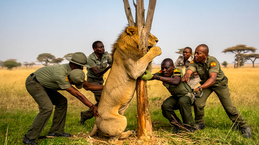 Лев застрял в дереве на три дня. То, что сделали эти рейнджеры, навсегда изменило их жизнь