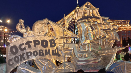 Ещё одно место для непременного посещения в новогодние праздники - ледовый городок на площади Революции Челябинска. Было опасение, что его в эти выходные не сможем посетить: из-за неожиданной оттепели в первые дни января 2025 до +3 градусов он несколько дней был закрыт для посещения. Но в Рождество температура вернулась к своим зимним значениям, и ледяное чудо вновь стало доступно. Выехали из дома в 16-00, чтобы добраться до центральной площади до наступления темноты. Сквозь стёкла машины в пути наблюдали, как огромный огненный шар солнца опускается к горизонту...