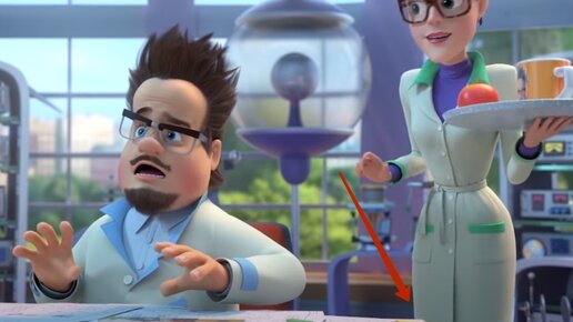 Перейдём к ляпам из мультфильма фиксики против кработов. 1. На столе справа лежит жёлтый карандаш. Но через несколько секунд план меняется и рядом с жёлтым карандашом появляется зелёный. 2. А вот в этом кадре фиксики и люди общаются вообще с выключенной камерой. 3. Когда Симка ударяет Нолика её рука становится длиннее. Это можно сравнить с другой рукой...
