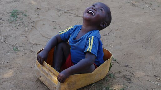 Мадагаскар — очень молодая страна, дети тут составляют половину всего населения. Каждые 36 секунд на свет появляется новый житель Мадагаскара (а умирает только один раз в три минуты), а всего на одну женщину приходится больше пяти рождений. Несмотря на ужасающую бедность, дети — везде дети, всегда веселы и беззаботны. Особенно, когда у тебя есть вот такие "саночки" из старой канистры и туристы в ожидании парома тебя в них катают. Понятно, что игрушки у тебя будут только те, что ты сам сделаешь...