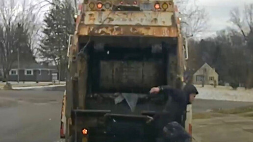 В США преступника, скрывающегося от полиции, нашли в мусорном баке, сообщает Huff Post. Инцидент произошел в понедельник, 23 февраля, в Хьюбер-Хайтс, штат Огайо, и попал на видеорегистратор, установленный в полицейской машине. На записи видно, как сотрудник санитарной службы остановился на перекрестке, собираясь опорожнить мусорный бак, и уже катил его к мусоровозу, но, заметив внутри человека, начал махать руками, привлекая внимание стражей порядка...