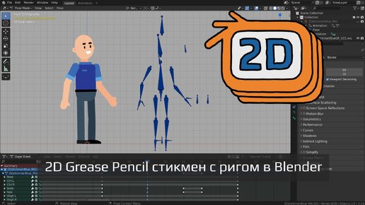 Создание рига 2D Grease Pencil стикмен персонажа в Blender 3.3
