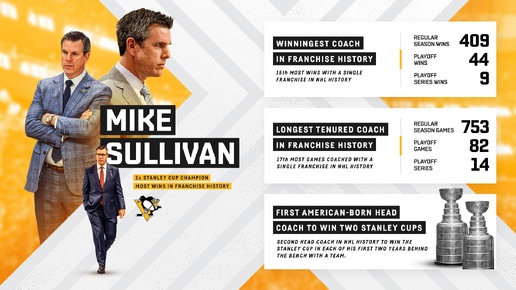 🐧 Майк Салливан — легендар Кто бы что ни говорил о том, как Салливан работал в последние несколько сезонов, это не отменит величия этого коуча. Салливан, который был весьма посредственным хоккеистом (700 игр, 136 очков), стал тренером-легендой, с чьим именем ассоциируется «Питтсбург» второй половины десятых и первой половины 20-х годов нынешнего столетия. Десять лет у руля команды и множество достижений. Переписывать их смысла нет — ключевые отражены на инфографике. Действительно эпоха, большой отрезок истории клуба...