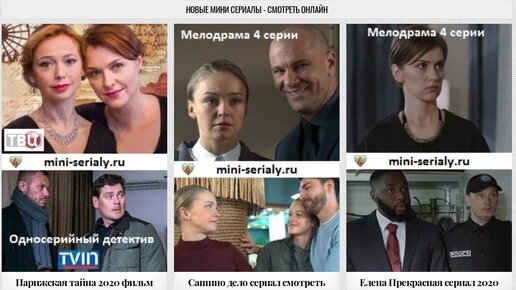 Смотреть онлайн русские мини сериалы 2021 года новинки русские и украинские. Мини сериалы мелодрама по 4 серии российские. Которые уже вышли и можно посмотреть. На сайте mini-serialy.ru вы сможете найти свежие отечественные фильмы и сериалы 2020 г...