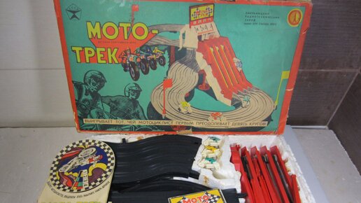 Ещё занятную игру из далёкого удалось найти на просторах интернета. Игра имитировала этакий электронный вариант мотокросса для четырёх мотоциклов каждый, из которых ехал по своей дорожке. Сама трасса была разборной и имела конфигурацию в виде восьмёрки. Однако была одна особенность,по которой сам трек собрать было не так то уж и просто (тем более ребёнку лет пяти, шести).