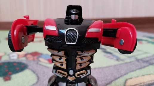 ссылка на робота https://s.click.aliexpress.com/e/_eKaWho Дочка любит трансформеров, но обычно нужно приложить усилия, чтобы машинка сменила свой облик, что-то крутить, менять вручную. А здесь все просто - при нажатии на кнопку на бампере, машинка мгновенно превращается в робота. Зрелищно) Особенно если врезаться им во что-то. Трансформация обратно в машину тоже происходит без сложностей, одной рукой - просто прижимаем туловище к колесикам. Машинка длиной примерно 12см, такой же высотой получается робот...
