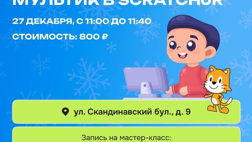 » 🎬❄️ Хотите, чтобы ваш ребенок создал свой волшебный новогодний мультфильм? ✨ Приглашаем на увлекательный мастер-класс! Дети за 40 минут освоят основы анимации с помощью ScratchJr. Никакого сложного кода – только веселые блоки и пошаговое руководство. Что ждет ребенка? 🚀 Программирование движений: оживим героев, зададим движения, повторы и паузы. 🎨 Создание сцен: нарисуем 1-2 новогодние сцены с переходами. 🎶 Добавление звуков: оживим мультфильм звуками и музыкой. 🌟 Презентация шедевра: покажем свой мультфильм на экране! Идеально для детей 5-6 лет: Развитие логики и креативности...