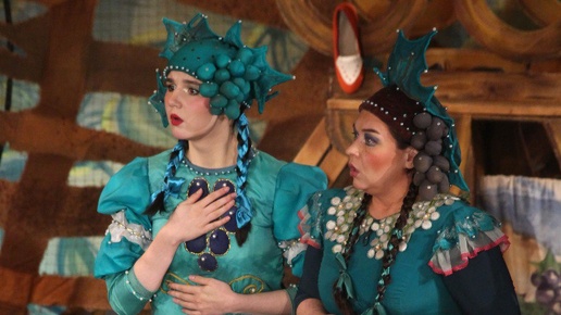 "Приключения Чиполлино", сцена из спектакля. Помощник Мастера Виноградинки - Эвелина Литвинова, Мастер Виноградинка - Виктория Аганина.