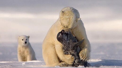 Белые медведи: Неочевидные факты. Охотится на моржей при помощи камней, продолжает род с бурыми медведями и невидим в тепловизор