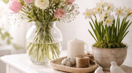 Изменить интерьер - не значит полностью переделать квартиру вплоть до сноса стен и возведения новых. Даже если очень хочется внести весеннее настроение в свой дом, можно обойтись декоративными решениями. Текстиль - это то, что может изменить ваш интерьер до неузнаваемости! Сезонные цветы - лучший способ показать, что весна у вас уже дома. Нарциссы, тюльпаны - если не охапками в вазах, то выращенные в горшочках. В любом исполнении они будут кстати! А можно как в детстве - срезать ветку дерева и поставить в вазу с теплой водой...