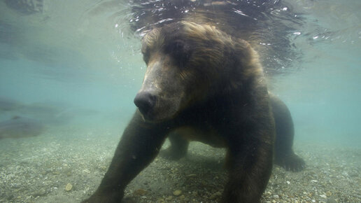 Стоит сказать, что с уловом мишка остался не с первого раза, но "рыбак" все же выловил своего трофея. Оператор конечно совсем бесстрашный, как же близко он подошел к этому опасному зверюге! Занимательный факт: в то время, когда косолапый ведет охоту на лосося, он обычно до такой степени уходит в этот процесс, что всё вокруг кроме рыбы для него перестаёт существовать. В этот момент можно подойти к нему довольно близко - остальное ему абсолютно не интересно. Полным-полно очень крутых фотографий с мишой...
